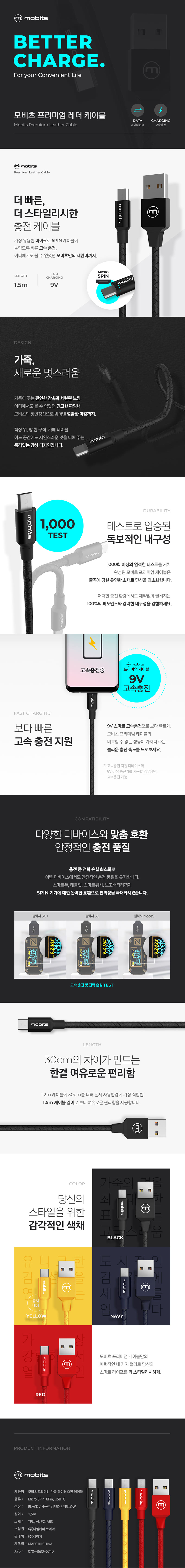 선보이는 프리미엄 레더 케이블의 상세페이지를